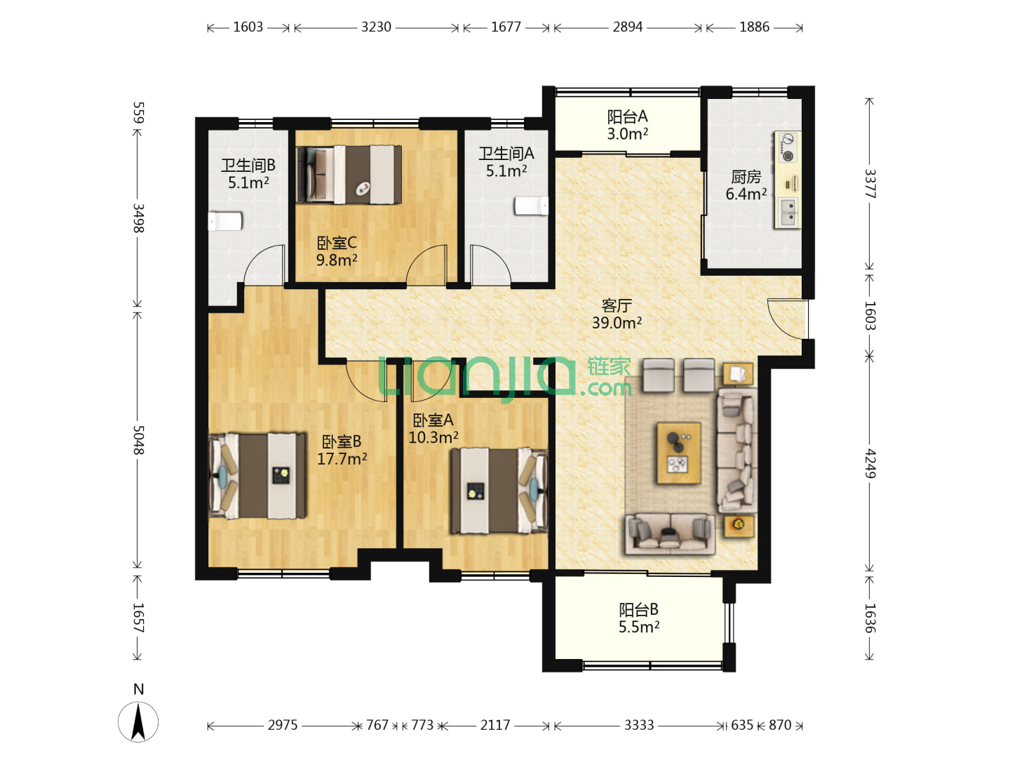 3室2厅2卫 133㎡