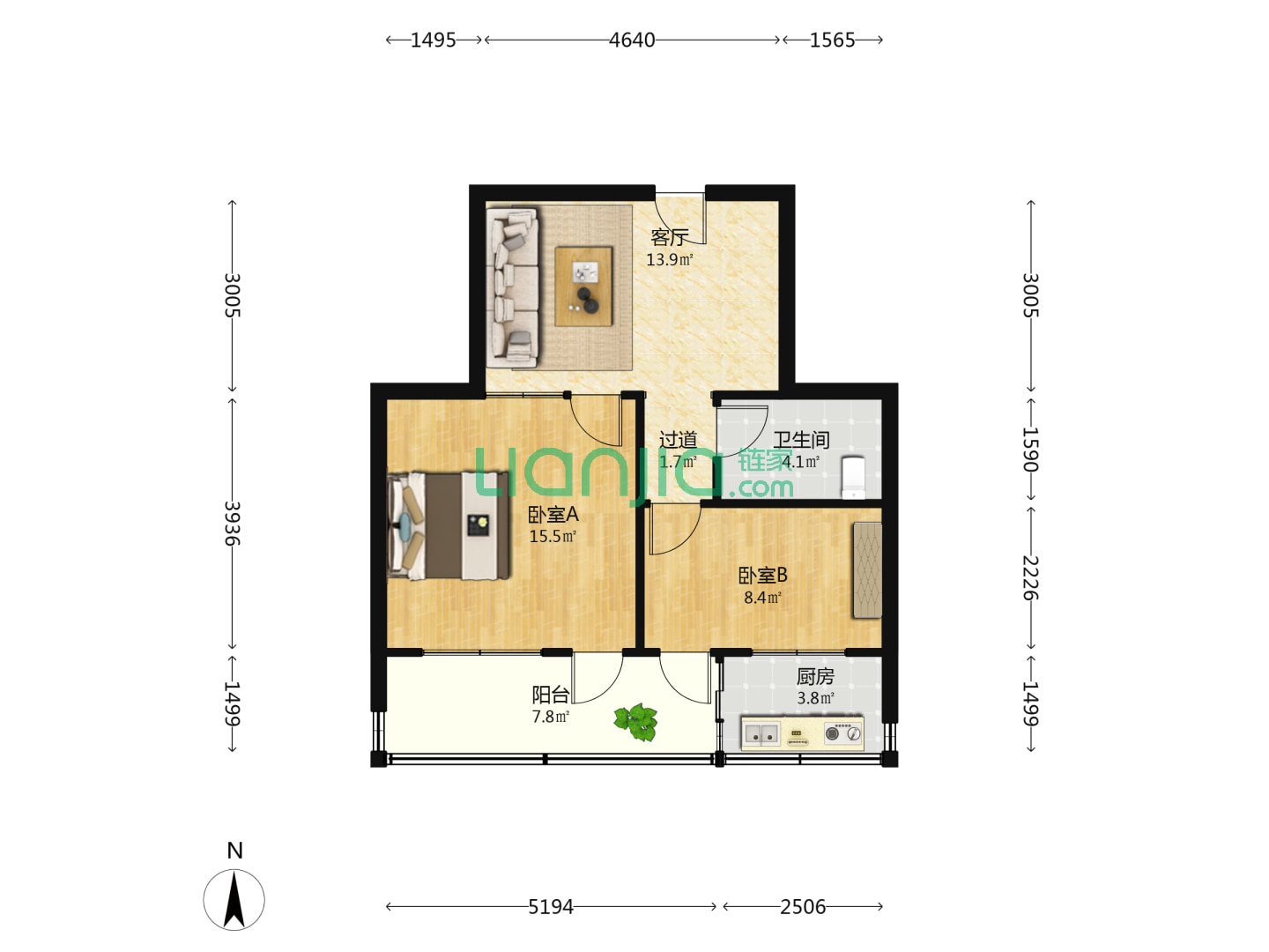 2室2厅2卫 78㎡