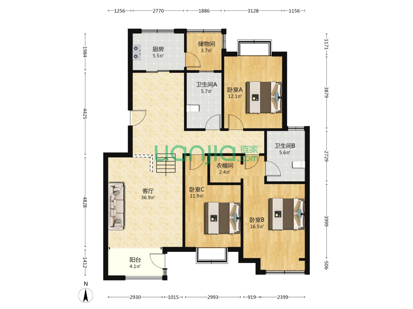 龙泉壹号,3室2厅2卫 132㎡